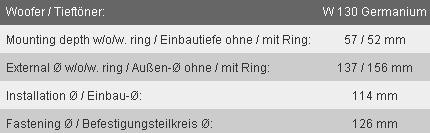 - Low resonance 165 mm/6.5" Euro standard woofer in aluminum die-cast basket with maximal airflow and eight-way screw-hole circle for kick-bass proof attachment