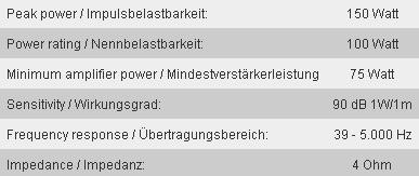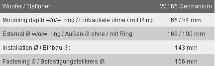 - Low resonance 165 mm/6.5" Euro standard woofer in aluminum die-cast basket with maximal airflow and eight-way screw-hole circle for kick-bass proof attachment