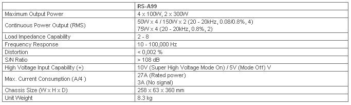 Made of only first-class audio components, RS-A99 Optical Digital Reference (ODR) amplifier is designed to bring you the purest and most dynamic sound in your car. Although compact in size, RS-A99 is a true sound champion, thanks to the state-of-the-art circuit layout which generates massive power output and sonic virtuosity.