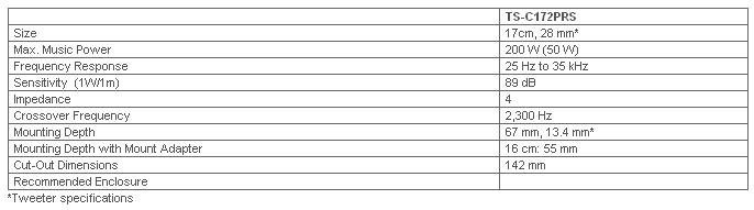 The TS-C172PRS 17 cm Component Speaker Package gives you an extraordinary range of audio frequency, satisfying your treble cravings and bass addictions.