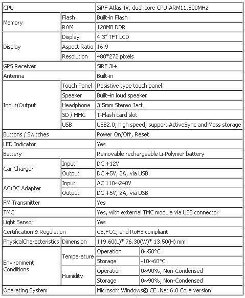 The full-featured WayWay Q4301 is a multi-function 4.3" touch-screen Portable Navigation Device (PND) with an ultra-slim and sleek fashionable design. Powered by the latest SiRF Atlas IV chipset with dual-core CPU at superfast speeds of 500MHz, it is able to handle 3D navigation with ease & precision.